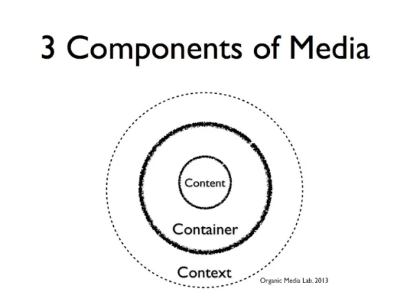 책으로 예를 들면 책 겉모양이 container, 내용물(스토리)가 content, 독서를 할 수 있는 주변 환경이 context 이다.