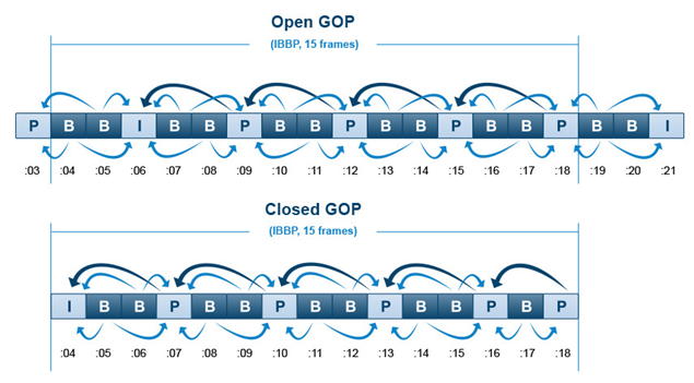 MPEG-2 코덱에선 Open GOP를 사용하고 x264 코덱에선 기본적으로 Closed GOP를 사용.