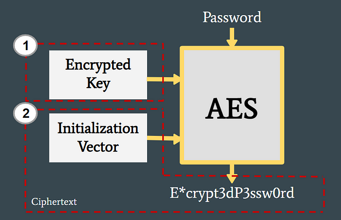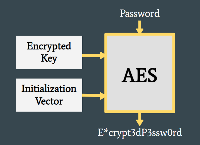 보안을 향상시키기 위해 초기화 벡터(임의의 데이터 문자열)를 추가할 수 있으며, AES 암호화를 수행하기 위해 암호화 키와 초기화 벡터를 모두 찾아야 하므로 가해자가 암호를 해독하기가 더 어려워진다.