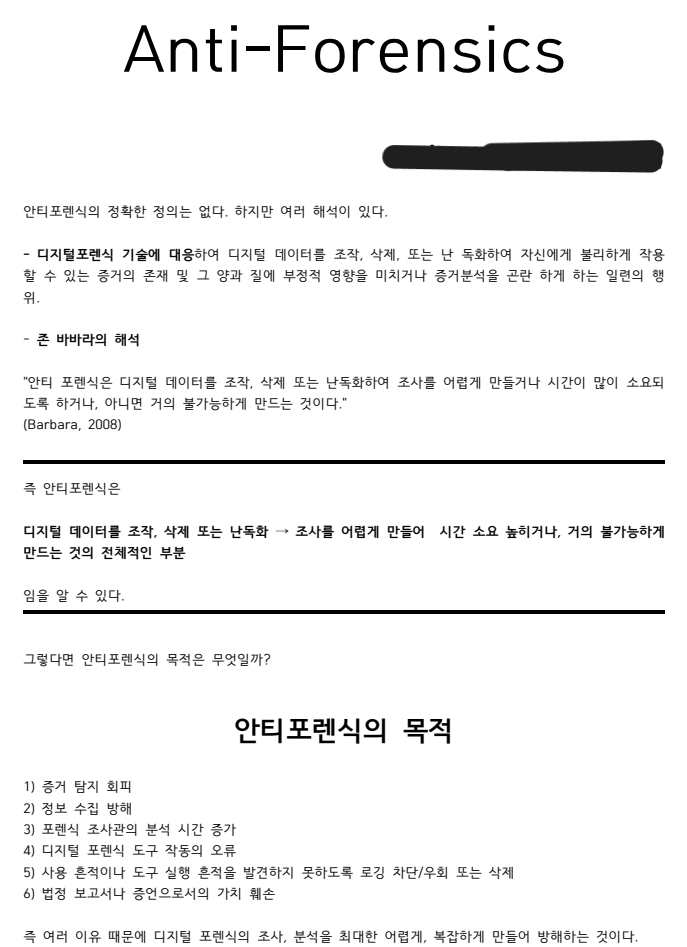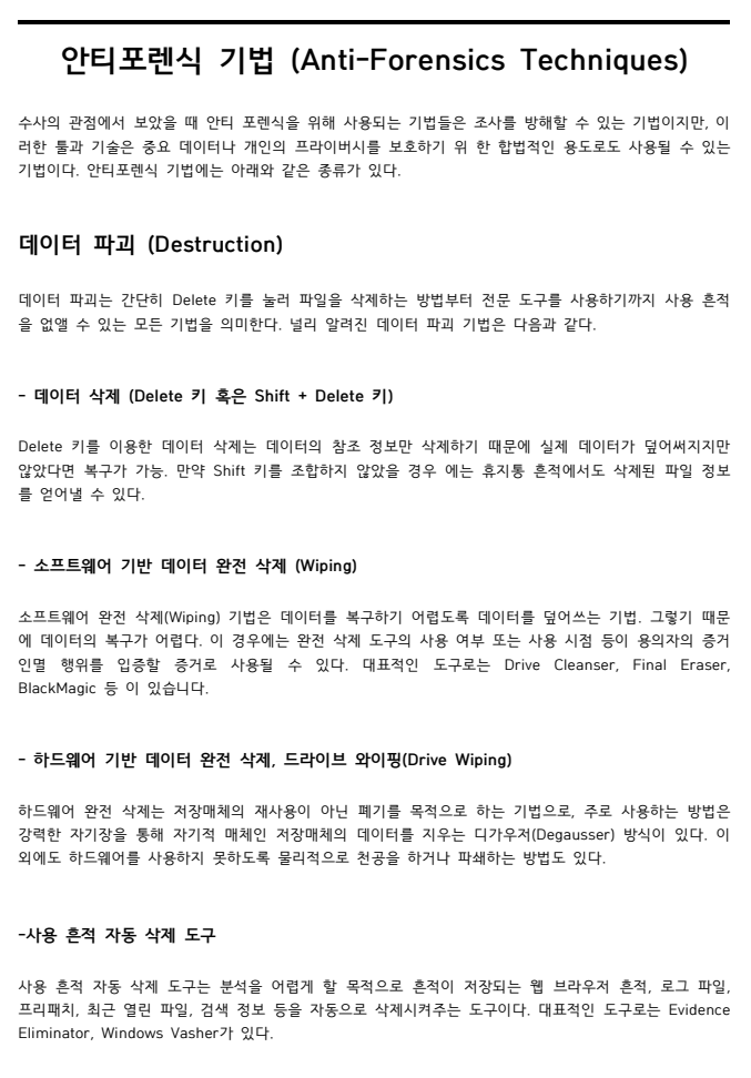 큰 범위의 Anti-Forensics을 다루기에 암호학, 비트락커 등의 세부내용은 자세히 서술치 않았다.
